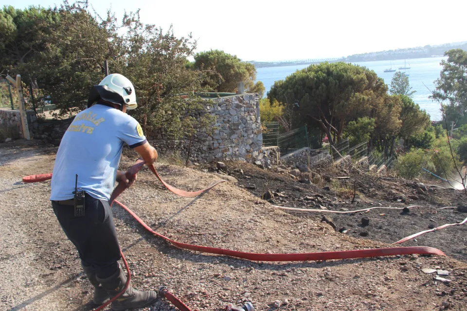Karaincir mevkisinde bulunan 5 yıldızlı otelin yanında çıkan yangına ilk olarak otel çalışanları müdahale etti. Alevlerin otelin bahçesine sıçramaması için uzun süre uğraş veren otel personelleri hortumlar ile yangına müdahale etti. İtfaiye ekipleri ilk olarak otel 50 metre kala yangını söndürdü. Otomobillerin ve motosikletin ise otel personelinin olduğu öğrenildi.
