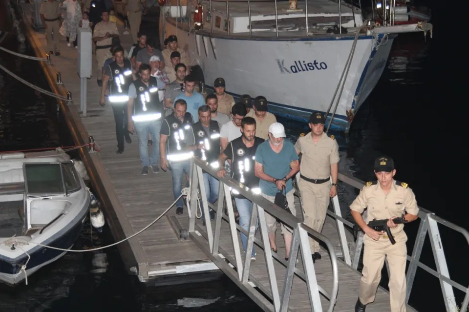 Fethiye'de bir istihbaratı değerlendiren Sahil Güvenlik ekipleri, Fethiye ilçesi Göcek Mahallesi Tersane Adası açıklarında "Bertuğ Bey 3" isimli günübirlik gezi teknesine operasyon düzenledi. Operasyonda yasa dışı yollarla Yunanistan'ın Rodos Adası'na kaçmaya çalıştıkları tespit edilen 2'si kadın 10 kişi yakalandı. Gözaltına alınan S.K, S.T, F.S, M.N.T, N.K, İ.T, eski komiser H.K, eski komiser yardımcısı İ.S ve H.K ile tekne kaptanı olduğu belirlenen C.K., Fethiye Sahil Güvenlik Komutanlığına getirildi. Teknede bulunan 2 çocuk da yakınlarına teslim edilmek üzere Fethiye İlçe Emniyet Müdürlüğü Kaçakçılık ve Organize Suçlarla Mücadele Grup Amirliğine götürüldü. Yakalananlardan 5’inin İzmir, Van, Kocaeli illerinde haklarında yakalama kararı bulunduğu, aralarında komiser, komiser yardımcısı ve öğretmenlerin yer aldığı zanlıların mesleklerinden ihraç edilen FETÖ/PDY üyeleri olduğu belirlendi. Zanlıların emniyetteki ifade işlemlerinin ardından adliyeye sevk edileceği öğrenildi.