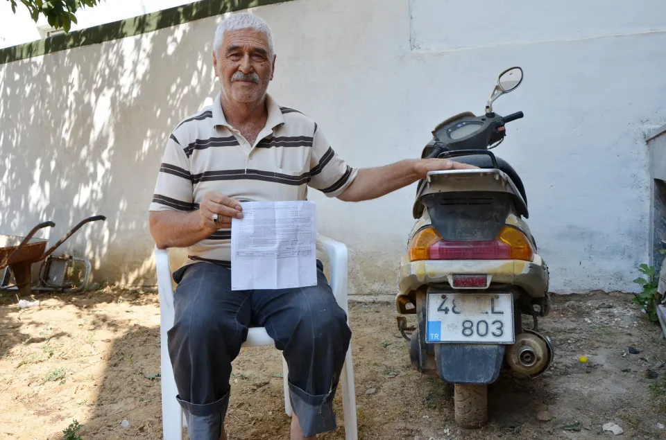 Milas ilçesinde ikamet eden Süleyman Kalınağıl adlı vatandaş, posta yoluyla kendisine ulaşan ceza makbuzunu görünce şok oldu. Yaklaşık 10 yıldır kullanılmayan ve atıl durumda evinin bahçesinde duran motosikletinin plakasına, Aydın-Çeşme Otoyolu Havalimanı istasyonunda yaptığı ihlal gerekçesiyle para cezası kesilmesini, garip olay olarak değerlendiren Kalınağıl, şimdi dava açmaya hazırlanıyor.