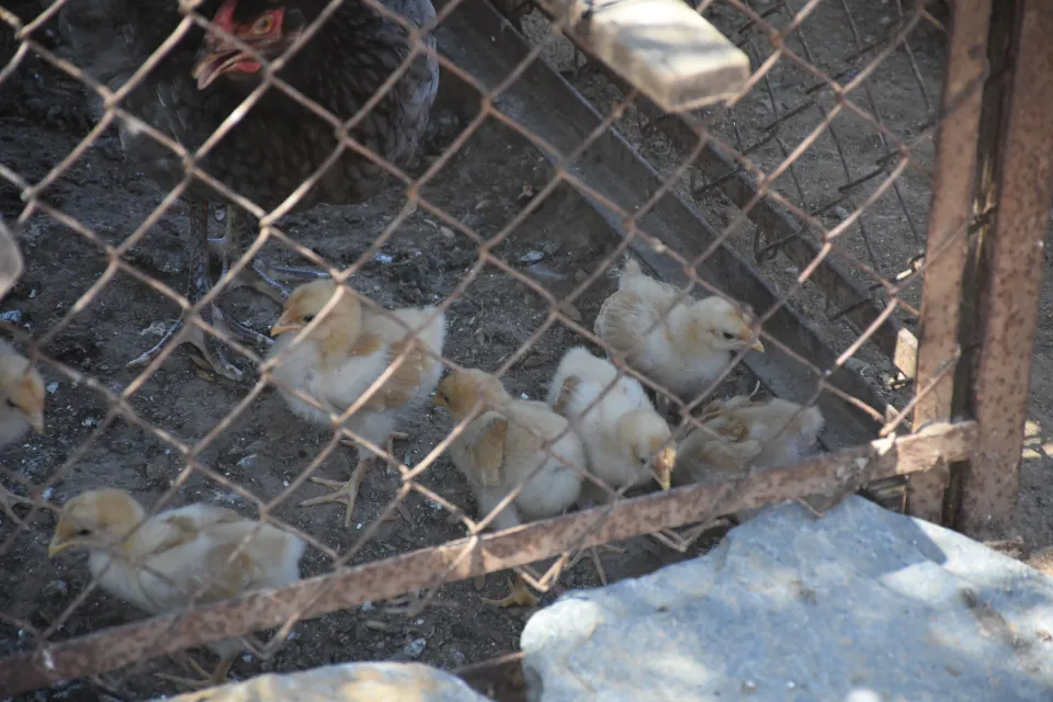 Civcivlerle tavuk ve horoz, daha sonra yıkılan evin bahçe kısmındaki kümese konuldu.