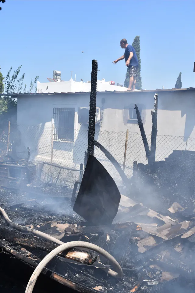 Yangının çevredeki evlerin çatı kısımlarına da sıçraması üzerine kısa süreli panik yaşandı.