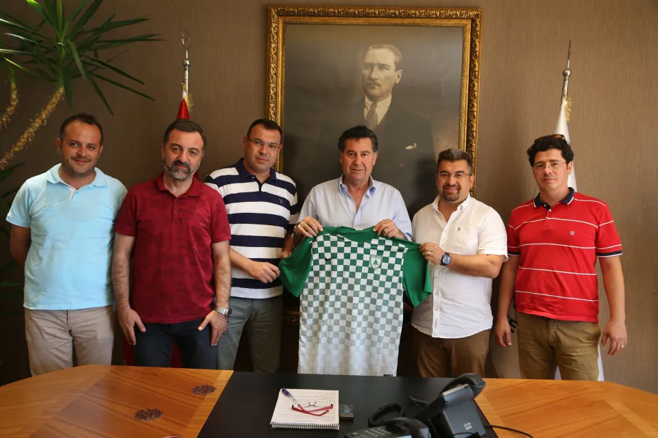 Muğlaspor Başkanı Haluk Beyimoğlu ve yöneticileri Bodrum Belediye Başkanı Mehmet Kocadon'u makamında ziyaret etti.