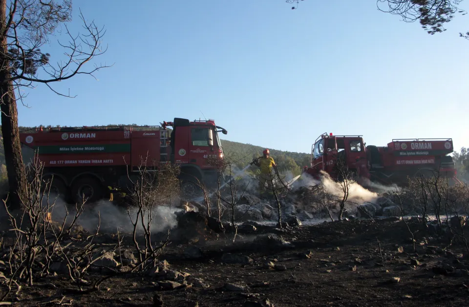 Muğla Büyükşehir Belediyesi Bodrum İtfaiye Grup Amirliği ekiplerinin de desteğiyle soğutma çalışmaları sürdürülüyor.