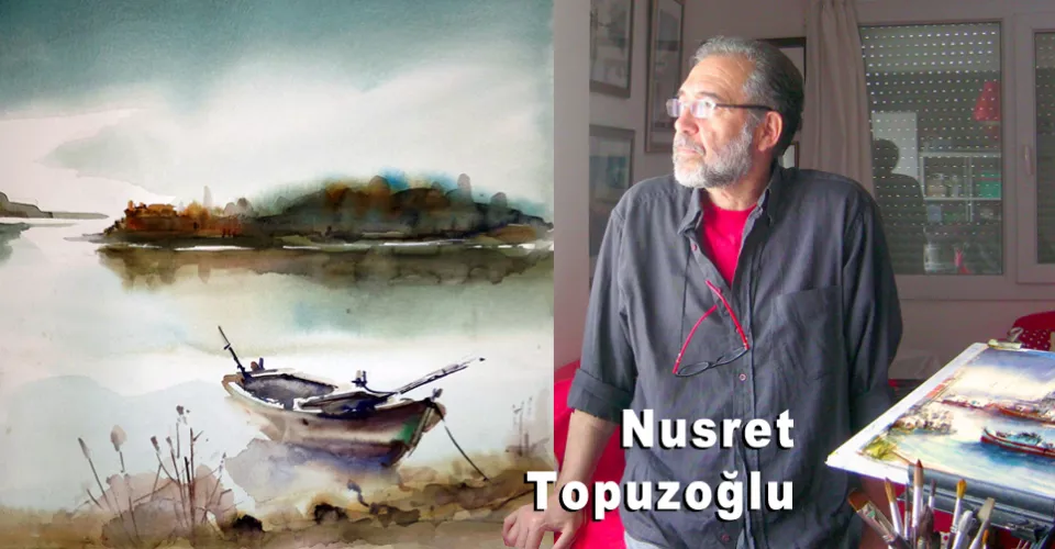 Nusret Topuzoğlu 1950'da İstanbul'da doğdu. Çocukluk ve gençlik dönemlerinde çeşitli malzemelerle resim yapan sanatçı 2001 yılında çeşitli hobilerine daha fazla zaman ayırabilmek için erken yaşta emekli oldu. Emekli olunca resim yapmaya zaman ayırarak fırsat buldukça suluboya resimle uğraşmaya başladı. Ciddi bir şekilde suluboya çalışmaya başlaması 2004'da suluboya ustası Işıl Özışık atölyesine katılmakla oldu. Suluboya hayatındaki en önemli uğraş haline geldi. Zaman içinde kendisini geliştirerek yurtiçi ve yurt dışındaki suluboya resim çevrelerinin tanıdığı bir ressam oldu. Sanatçı Bodrumdaki atelyesinde çalışmalarını sürdürmektedir.