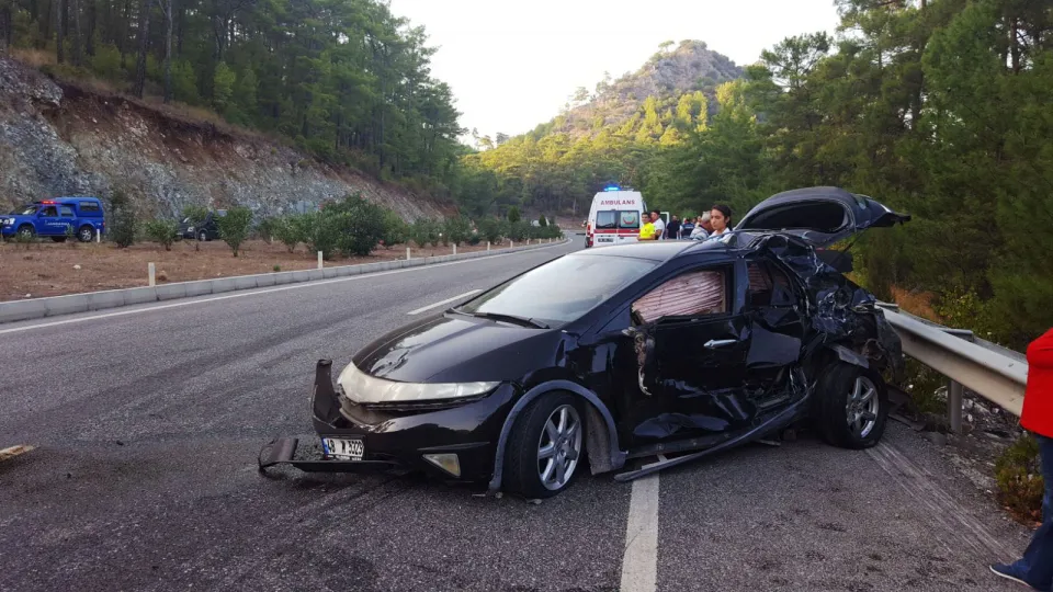 Zara Uyar (39) yönetimindeki 48 M 5329 plakalı otomobil, Marmaris-Menteşe karayolunun Karacasöğüt Mahallesi kavşağında Kenan Bulut'un (26) yönetimindeki 48 SV 403 plakalı bir otelin personelini taşıyan servis minibüsü ile çarpıştı.
