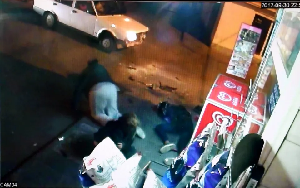 Bodrum ilçesinde, motosikletle otomobilin çarpıştığı ve 3 kişinin yaralandığı trafik kazası, bir iş yerinin güvenlik kamerasınca görüntülendi.