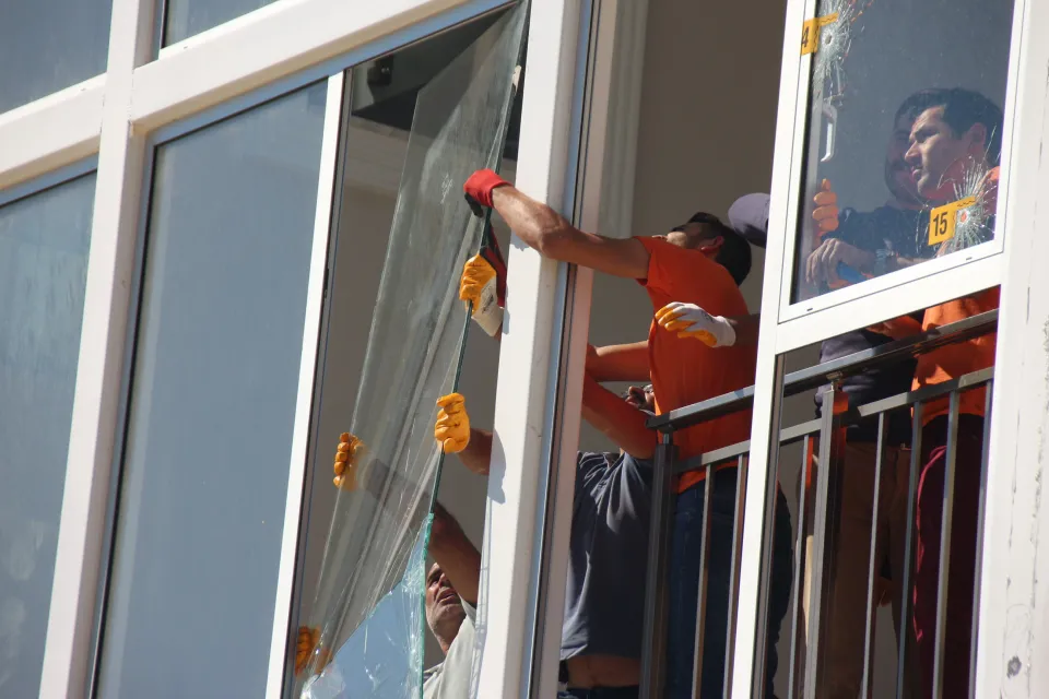 Çok sayıda merminin isabet ettiği okulun camları kırılırken, duvarlarında da delikler oluştu.