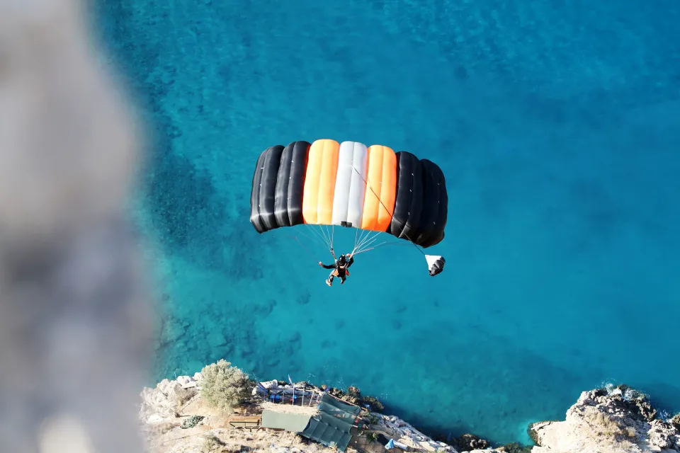Vadinin kuzeybatı yamacındaki kayalıkların üzerine kurulan Fethibey Atlayış Noktası'ndan atlayan sporcular, Kelebekler Vadisi'ndeki plaja iniş yaptı.