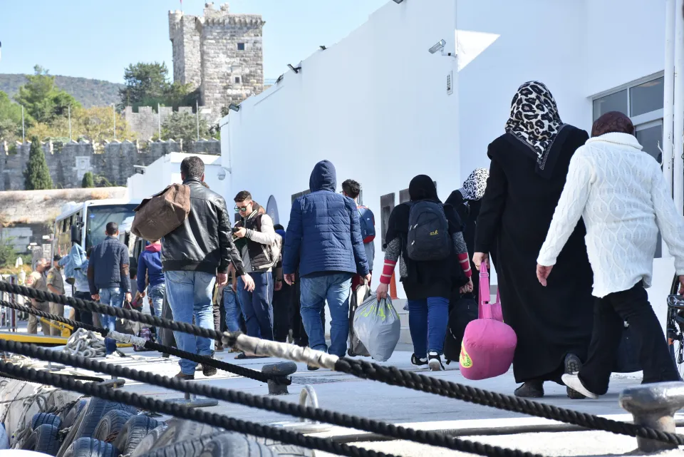 Bodrum Sahil Güvenlik Komutanlığı iskelesine getirilen Suriyeliler, Muğla Göç İdaresi Müdürlüğüne teslim edilecek.