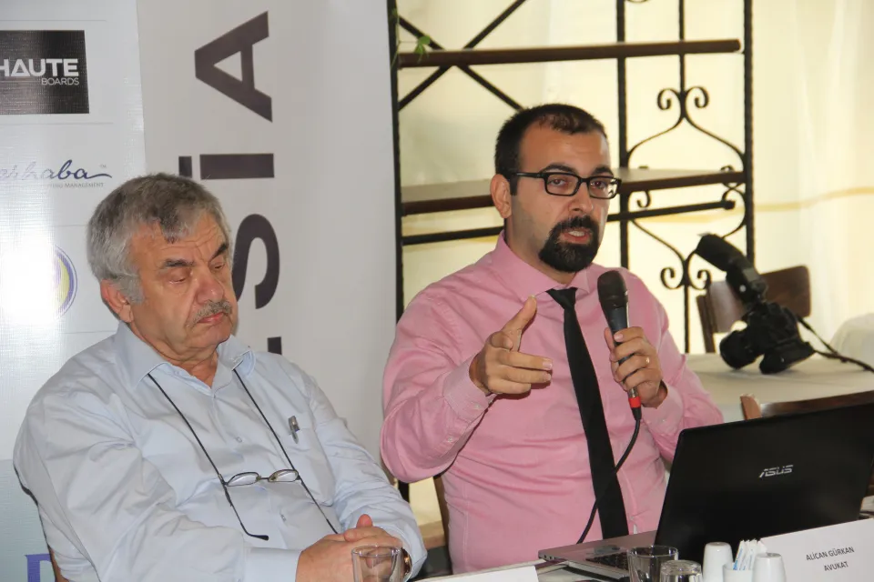 Daha sonra söz alan Av. Alican Gürkan Arabuluculuk yasası ve İş Mahkemeleri Kanununda yapılan değişiklikler ile iş insanlarının ve işçilerin önüne ne gibi sorunlar geldiğini anlattı.