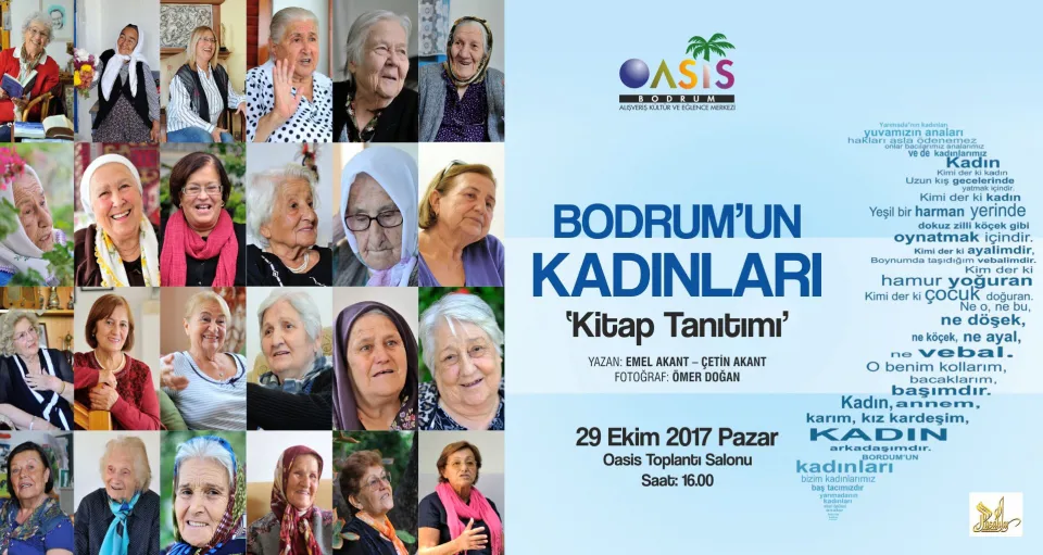 Faaliyete geçtiği günden bu yana sanatı, Bodrum’u ve Bodrum’un kültür değerlerini önceliklerinden sayan Oasis Alışveriş Kültür ve Eğlence Merkezi, Emel ve Çetin Akant önderliğinde, 29 Ekim 2017 Pazar günü, saat 16.00’da, Oasis Toplantı Salonu’nda gerçekleşecek imza günü ve söyleşiyle birlikte‘Bodrum’un Kadınları’ kitabını Bodrumlularla buluşturuyor.