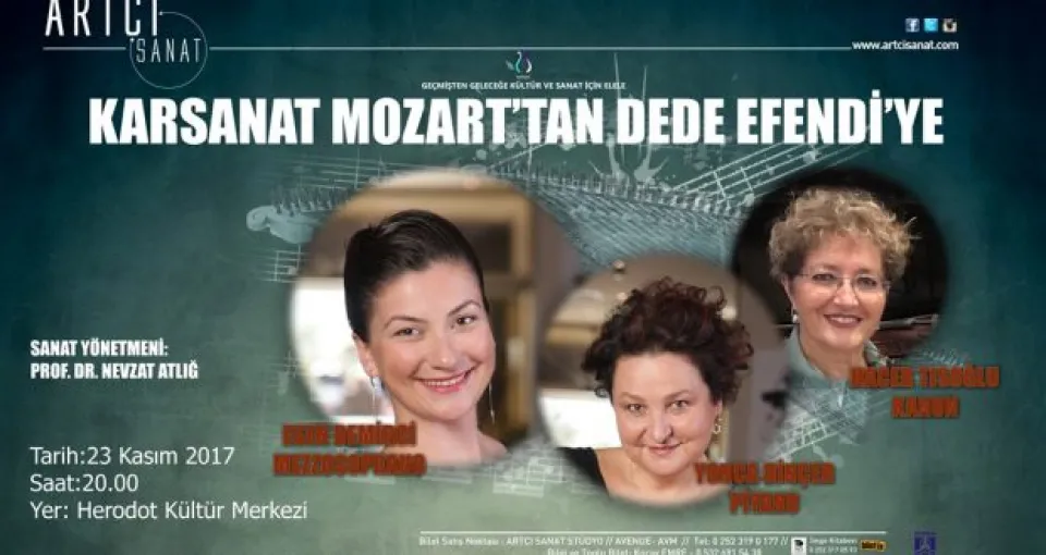 KARYA Kültür ve Sanat Derneği (Karsanat) 23.Kasım.2017 Perşembe günü saat 20.00’de Herodot Kültür Merkezi’nde “Mozart’tan Dede Efendi’ye” adı ile bir konser düzenlemektedir.