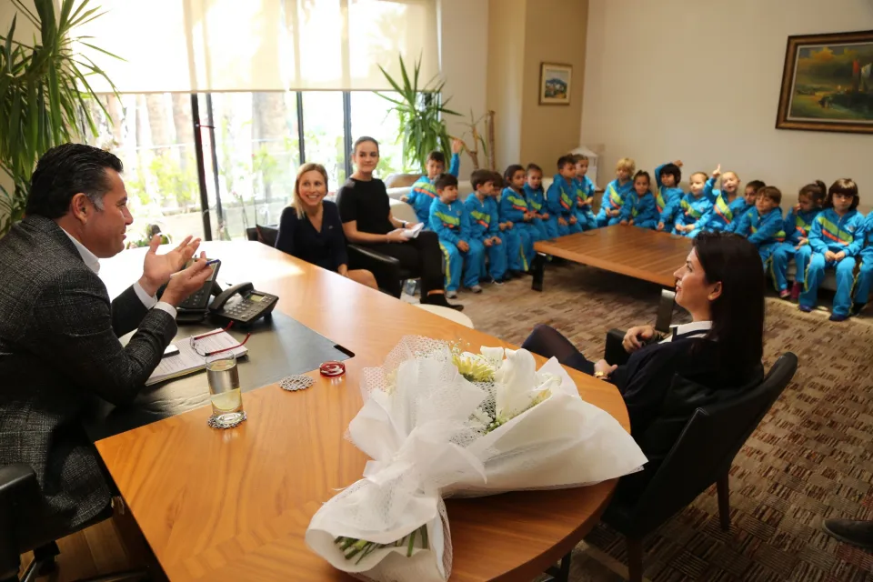 Anaokulu öğrencileri, Bodrum Belediye Başkanı Mehmet Kocadon’u makamında ziyaret etti.
