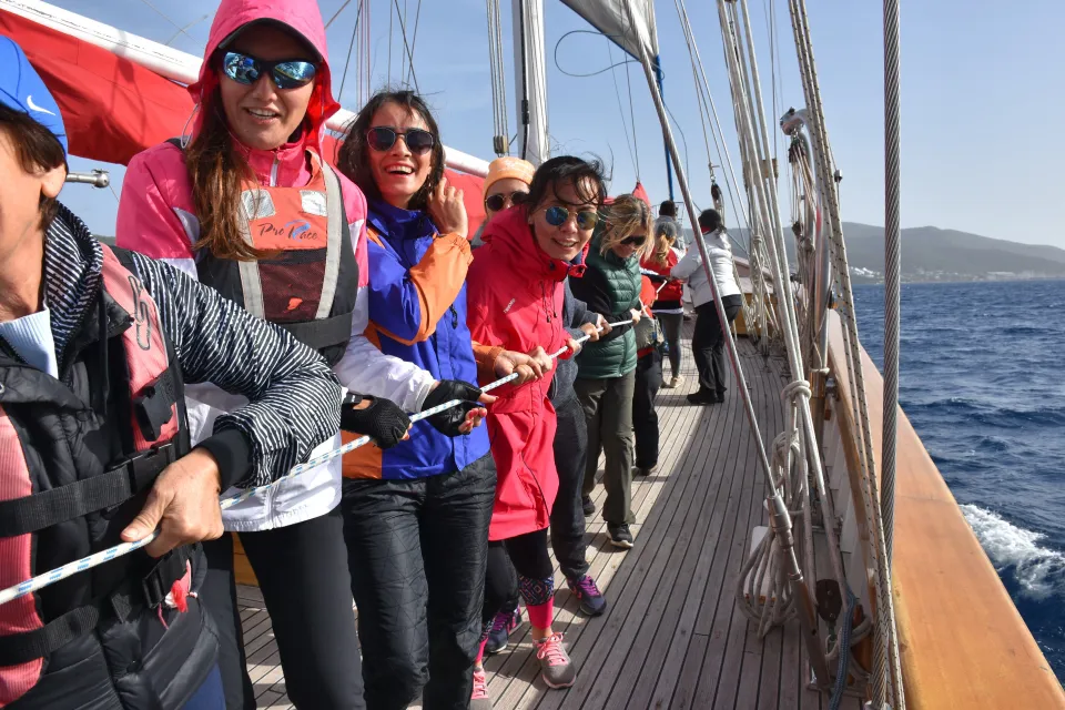 Bodrum'un Yelkenli Okul Gemisi STS'de düzenlenen etkinlikte kadınlar yelken açma, tekne kullanma ve bağlama konularında uygulamalı bilgi aldı. Bodrum açıklarında gerçekleştirilen ve 41 kadının katıldığı eğitimlerde, kadınlar keyifli anlar yaşadı.