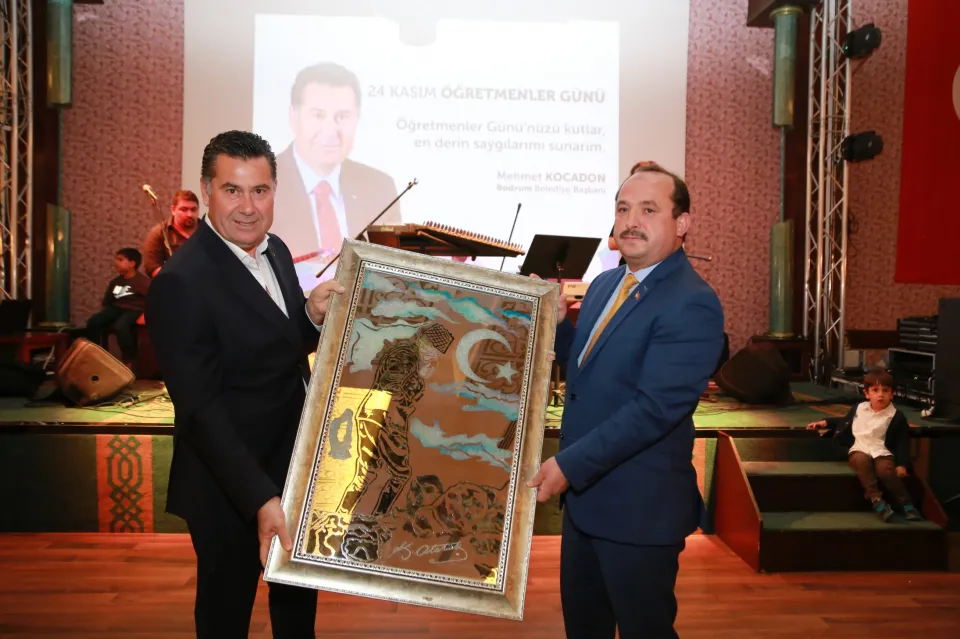 Bu önemli günde beraber olmaktan mutlu ve gururlu olduğunu ifade eden Bodrum Belediye Başkanı Mehmet Kocadon, “Emaneti teslim almış hür düşüncelere sahip laik Türkiye Cumhuriyeti’nin temel taşlarını yetiştiren değerli öğretmenlerim, hepiniz bu geceye hoş geldiniz. Ben burada Belediye Başkanı olarak konuşabiliyorsam bilin ki ben de sizlerin eseriyim. Beni de sizler eğittiniz, sizler öğrettiniz. Ben eğitime inanan ve eğitim için her türlü mücadeleyi yapan bir belediye başkanıyım. 19 yıldır sizlerle beraberiz. Bu 19 yıl içerisinde gerçekten eğitime güzel katkılar sağladığımı düşünüyorum. Okullar yaptık, okullarımızın birçok eksiklerini tamamladık, kurslar açtık. Hiç kimsenin ne düşüncesi ile ne yaşam tarzı ile ilgilenmeyiz önemli olan insana saygıdır. Ben buna gerçekten inanıyorum. Saygının olmadığı bir yerde bir adım ileri gitmemiz mümkün değil. Bu düşüncelerle değerli Milli Eğitim Müdürümüz ile beraber birçok yeni projelerimizin, okul projelerimizin altına imza attık. Bunları da en kısa zamanda hayata geçirmek biz yöneticilerin görevi. Hepinizin Bodrum gibi bir yerde memurluk yapmanın, öğretmenlik yapmanın ne kadar zor şartlar altında olduğunu biliyoruz. Ben elimden geldiği kadar hep yanınızda olmaya devam edeceğim. Çünkü sizler de biliyorsunuz benim eşim de bir öğretmen ve gerçekten onun sizleri bana nasıl anlattığını, ne kadar özveri ile çalıştığınızı bilen bir insanım. Bodrum Belediyesi olarak 19 yıldır sizlerle beraber olan ister abi deyin ister başkanım deyin ister kardeşim deyin sizlerle bugün burada olmaktan son derece mutlu ve gururluyum. Sizler gerçekten Laik Türkiye Cumhuriyeti’nin en büyük temel taşları olduğunuzu unutmayın. Hepinize sevgi ve saygılarımı sunuyorum.” dedi.