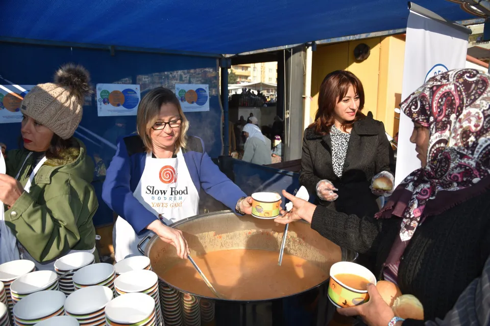 Etkinlik Kapsamında saat 10.00 da Salı Pazarı’nda Milas Belediyesi ve Yaveş Gari Bodrum Yerel Grubu tarafından sıcak Göce Tarhanası ve Tatlı mayalı Nohut ekmeği dağıtımı yapıldı.