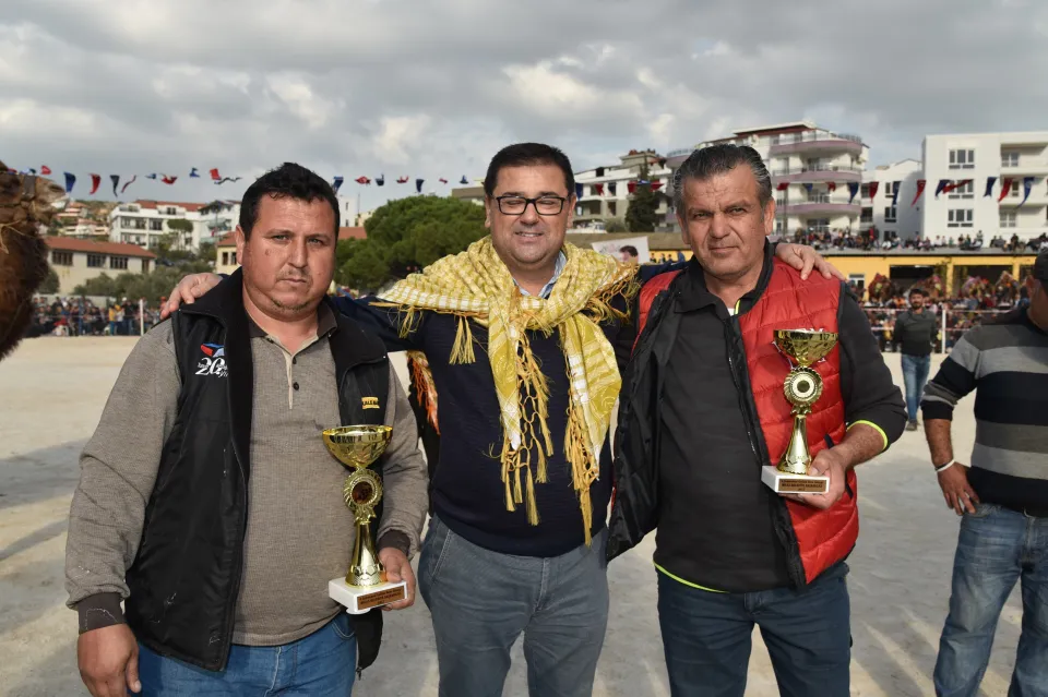 Güreşlerde Milas Belediye Başkanlığı kupasını kazanan deve sahibine ödülü Milas Belediye Başkanı Muhammet Tokat tarafından verildi.