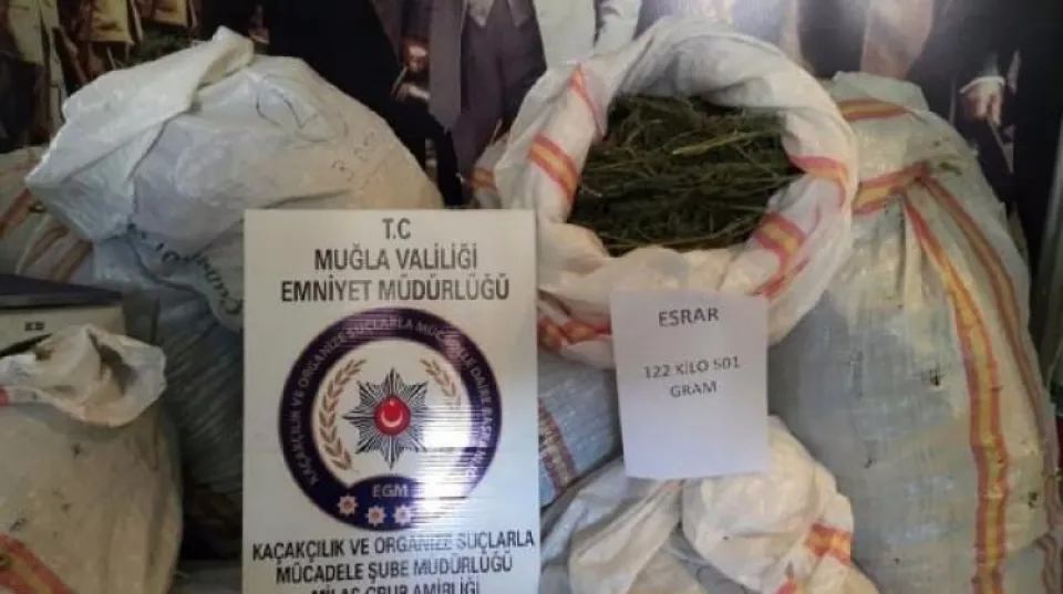Serada yetiştirildikten sonra satış için çuvallanan piyasa değeri 1 milyon lira olduğu belirtilen 122 kilo esrar ele geçirildi. Antalya'nın Korkuteli ilçesinde ele geçirilen esrarla birlikte Milas'tan M.Ü., Antalya'dan Ö.Ç., Şanlıurfa'dan B.K., Fethiye'den ise S.Ü., M.T., B.Ş. ve S.Ö. gözaltına alındı. Gözaltına alınan şüphelilerin sorgularının sürdüğü belirtildi.