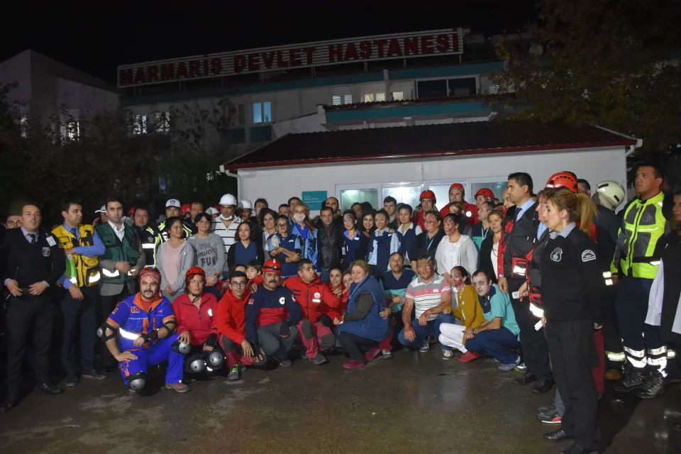 Marmaris devlet hastanesinde yangın ve göçük tatbikatı düzenlendi.