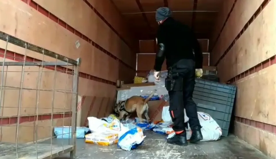 Uyuşturucunun narkotik köpeği tarafından bulunması, polis kamerasınca kaydedildi.