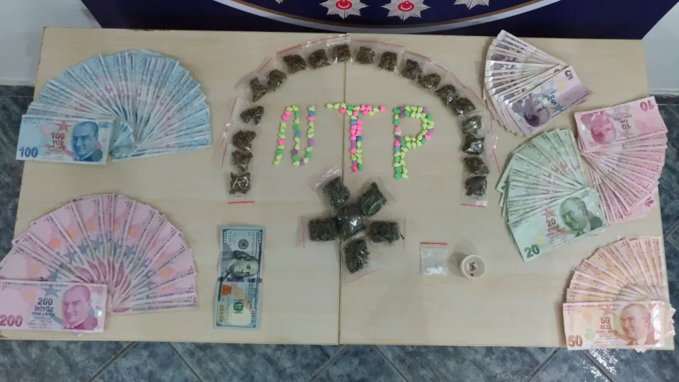 Zanlının kullandığı motosiklette ve ikametinde yapılan aramada 111 adet sentetik uyuşturucu hap, satışa hazır kilitli poşetlerde skunk (genetiği değiştirilmiş esrar) ve esrar ele geçirilirken, bu kişinin suçtan elde ettiği değerlendirilen bir miktar paraya da el konuldu.