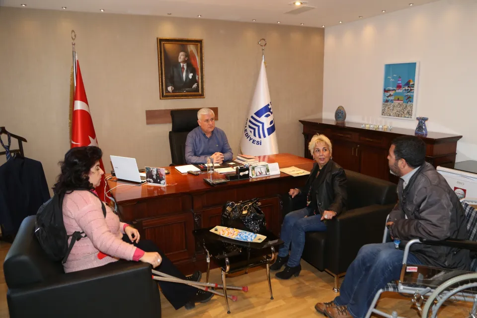 Bodrum Yarımada Engelli Haklarını Koruma Derneği Yönetim Kurulu Başkanı Esma Ezenel, dernek yönetim kurulu üyeleri ile birlikte Bodrum Belediye Başkan Yardımcısı İsmail Altındağ’ı ziyaret etti. Dernek yetkilileri Bodrum Belediyesi’ne yaptıkları ziyarette sosyal yardımlaşmayı esas alan bir kuruluş olarak yaptıkları faaliyetlerden ve çalışmalardan bahsetti. Dernek Başkanı Esma Ezenel, Bodrum Yarımada Engelli Haklarını Koruma Derneği’nin Bodrum ilçesi genelinde yaş farkı gözetmeksizin tüm engelli vatandaşların sesi olmak amacıyla kurulduğu belirtti.