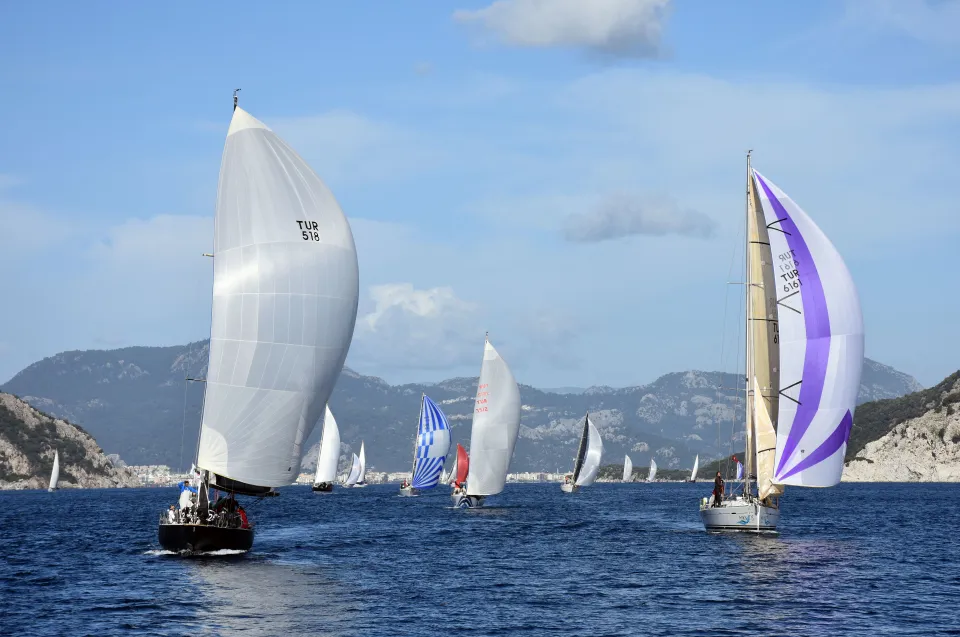 Açık denizdeki parkuru tamamlayan yatlar, koydaki finiş çizgisine varmak için rüzgarı yelkenlerine doldurarak birbirleriyle yarıştı. Yatlar, güneşli havada körfezde renkli görüntüler oluşturdu.