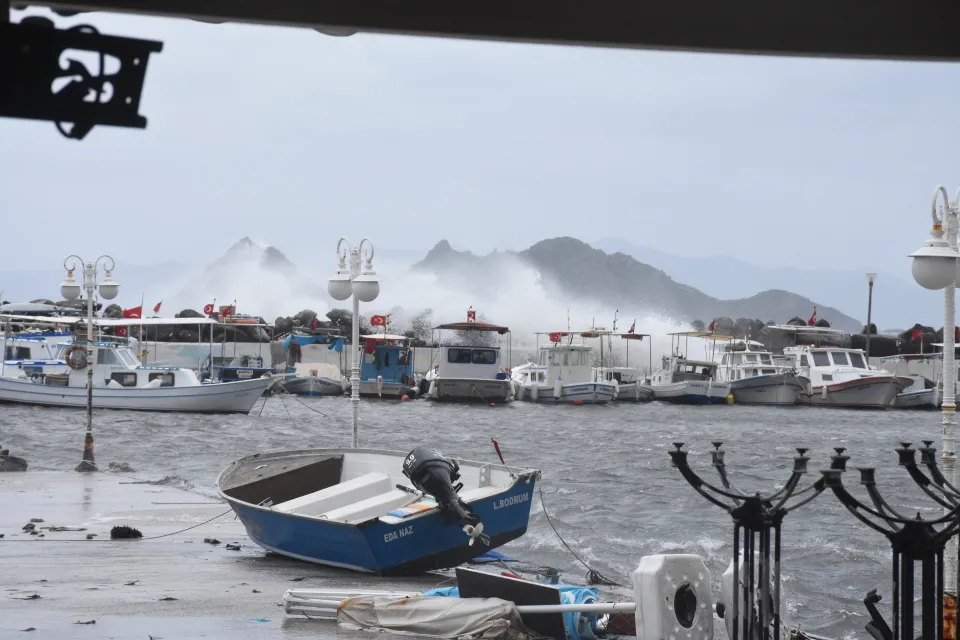 Turgutreis açıklarındaki bazı yük gemileri, yoğun dalgalar nedeniyle seyirlerini güçlükle sürdürebildi. Balıkçılar olumsuzluk yaşanmaması için denize çıkmadı. Turgutreis sahildeki bazı iskeleler de yoğun dalgalar nedeniyle zarar gördü.