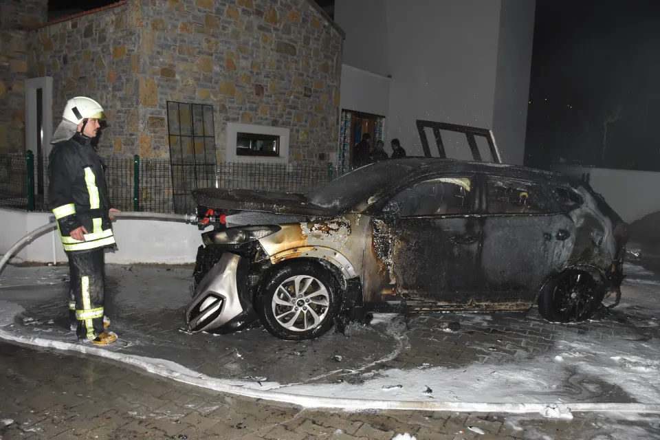 Ercan Özden, gazetecilere, evde oturdukları sırada bir gürültü duyduklarını, dışarıya çıktıklarında aracının yandığını gördüğünü belirterek, "Nasıl olduğunu bilemiyorum. Eve daha yeni taşınmıştık." dedi.