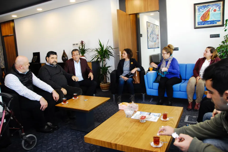 BODRUM Sağlık Vakfı Yönetim Kurulu Başkanı İbrahim Akkaya, İkinci Başkanı Fatih Can Ekşi, Yönetim Kurulu üyeleri Ilknur Yardım Özer, Ülker İnan ve kurum müdürü İlknur Şengül, BSV sanat atölyeleri sorumlusu Tarık Kartal ve seramik atölyesi öğrencileriyle birlikte Bodrum Ticaret Odası Başkanı Mahmut Kocadon'u makamında ziyaret ettiler. BSV 4. Erkan Dülgeroğlu Seramik Çalıştayı'nda öğrenciler ve sanatçıların beraber yaptıkları seramik pano Bodrum Ticaret Odası'nın yönetim katında sergilenmek üzere törenle teslim edildi.