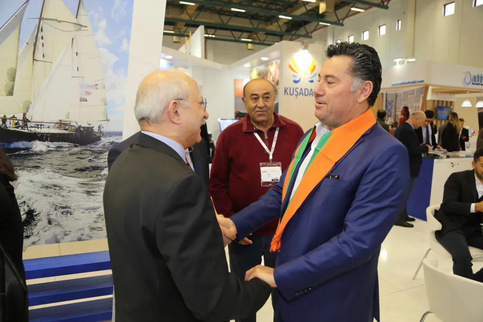 Bodrum Belediye Başkanı Mehmet Kocadon, fuarın ilk gününde ziyaretçiler ile bir araya gelerek sohbet etti, Bodrum ile ilgili merak edilen soruları yanıtladı. Özellikle Muğla Büyükşehir, Marmaris, Fethiye stantları başta olmak üzere bölge ilçelerinin stantları ile Türkiye Turizm Yatırımcıları Derneği’nin standını da gezen Başkan Mehmet Kocadon, yapılan çeşitli tanıtımlar ve çalışmalar hakkında fikir alışverişinde bulundu.