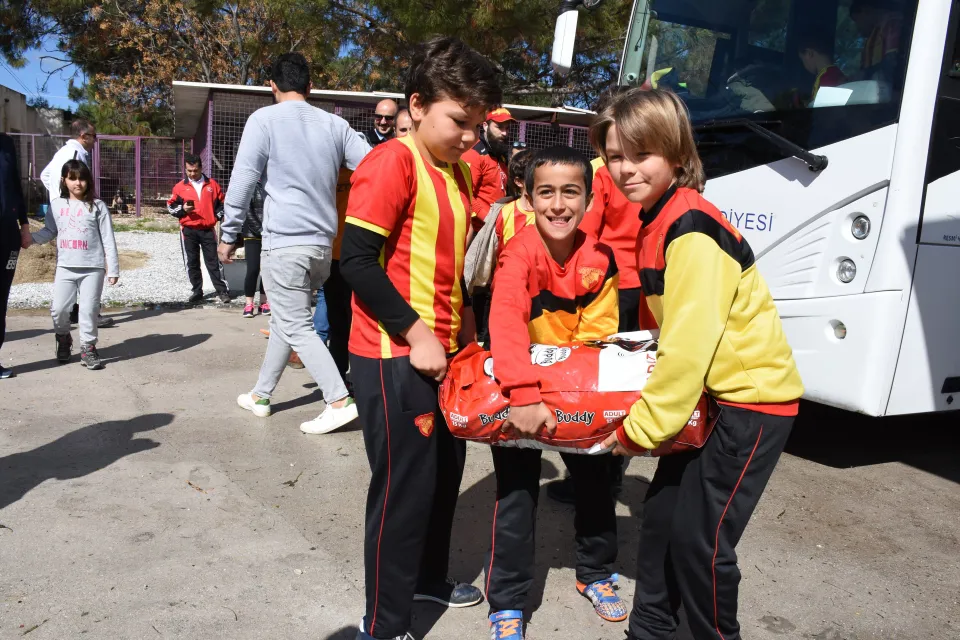 Göztepe Bodrum Futbol Okulu'nun yetkilileri ile ailelerinin eşlik ettiği 50 öğrenci, Bodrum Belediyesi Geçici Hayvan Bakımevini ziyaret etti.