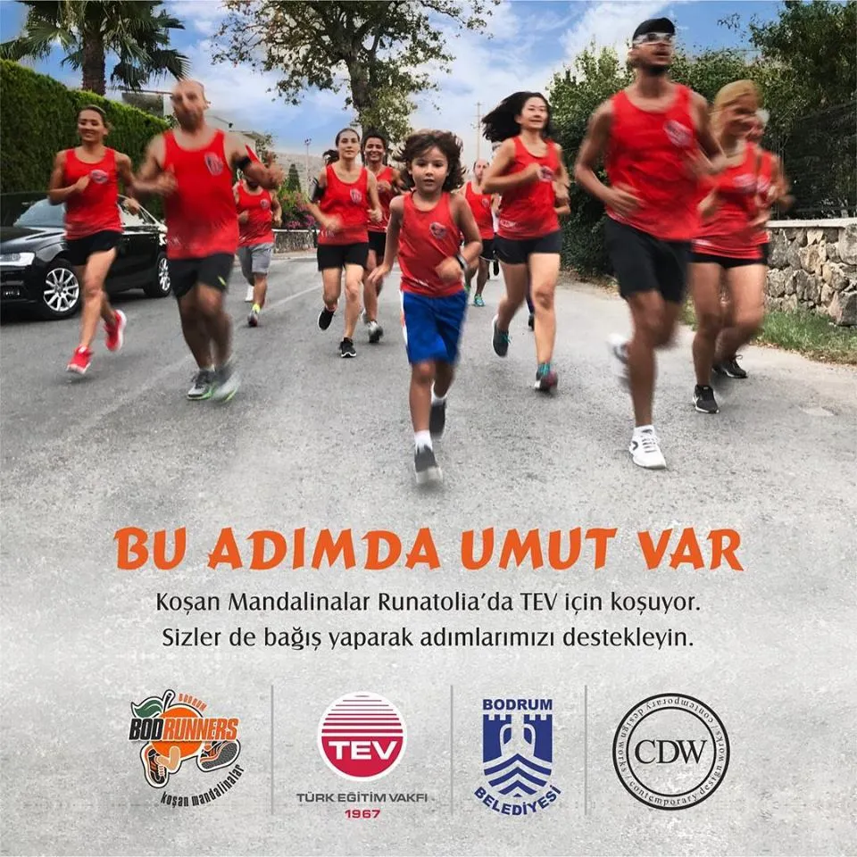 İlk koşusunu yaptığı günden bu yana sosyal farkındalığı amaç edinen, ilk günden itibaren farkındalık yaratmaya, harekete geçirmeye çalışan koşan mandalinalar, Türkiye’nin en büyük yarış organizasyonlarından olan @runatolia Antalya Maratonun da Türk Eğitim Vakfı Bodrum Şubesi ile “Bu Adımda Umut Var” kampanyası için koşacak.