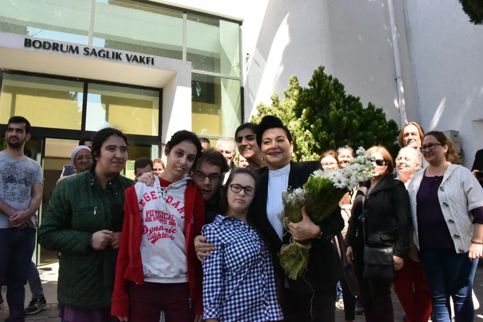 Vali Civelek’i Bodrum Sağlık Vakfı Başkanı İbrahim Akkaya ve Yönetim Kurulu Üyeleri, vakıf bünyesinde eğitim alan engelliler karşıladı.