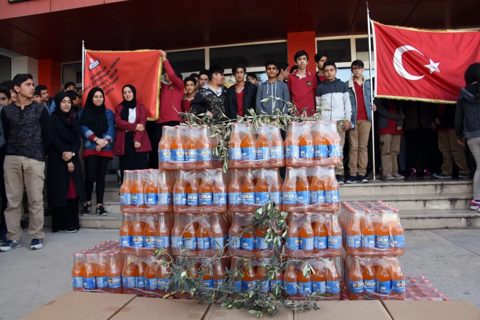 Öğrenciler ayrıca, harçlıklarından biriktirdikleri paralarla Afrin'de görev yapan askerlere göndermek üzere Bodrum mandalinası gazozu ve lokumu da aldı. Ürünler gönderilmeden önce okul bahçesinde tören düzenlendi. Törende, ürünlerle birlikte gönderilecek mektup okundu.