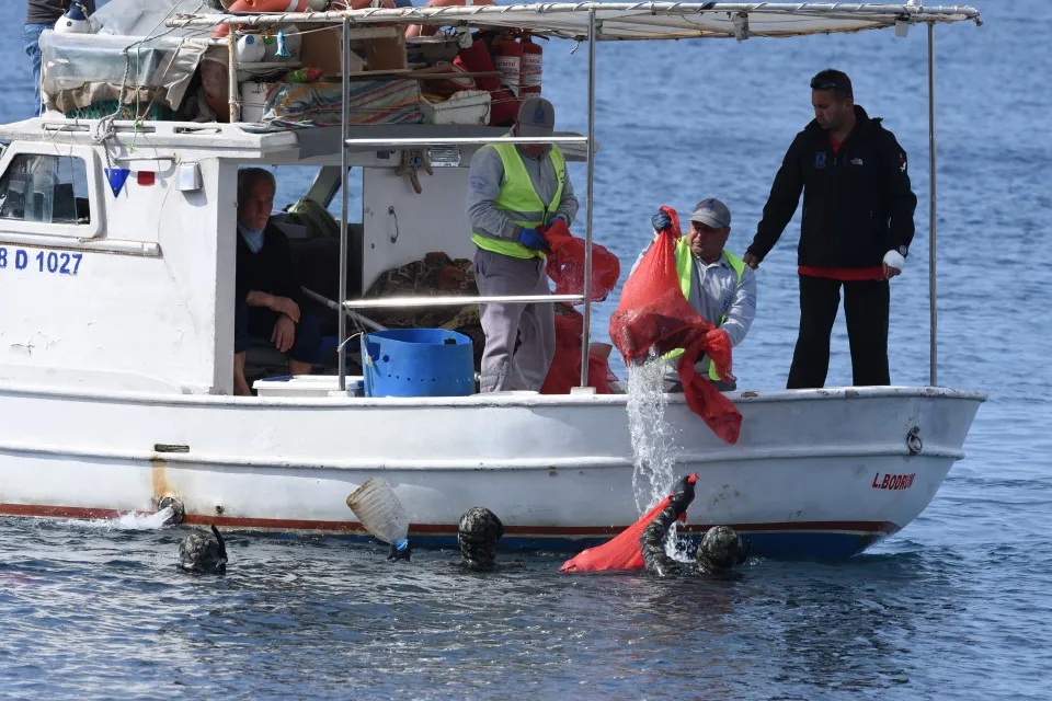 Bodrum ilçesinde "Denize en çok mavi yakışır" sloganıyla devam eden Bodrum Belediyesinin dalış takımında görevli 14 dalgıcın katıldığı deniz dibi temizliği çalışmalarında bugüne kadar 15 ton atık malzeme çıkarıldı.