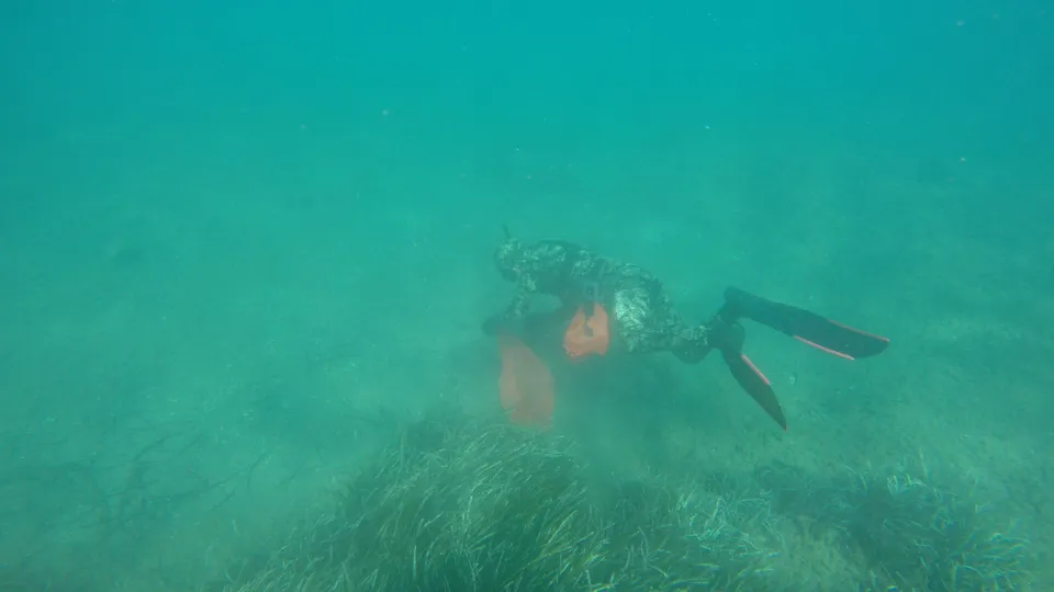 Ortakent Yahşi sahilinde haftanın ilk günü gerçekleştirilen Bodrum Belediyesi deniz dibi temizlik çalışmalarında dalgıçlarla birlikte denize açılan köpek, dalgıçların yanından ayrılmadı.