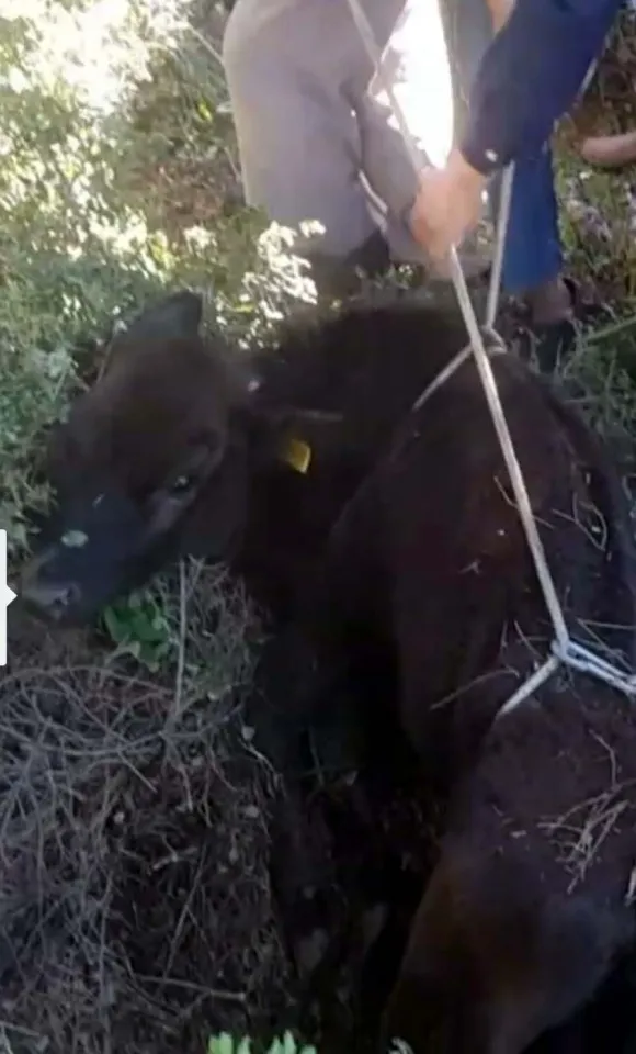 Yaklaşık 1 saat süren çalışma sonucunda kurtarılan dana sahibine teslim edildi.