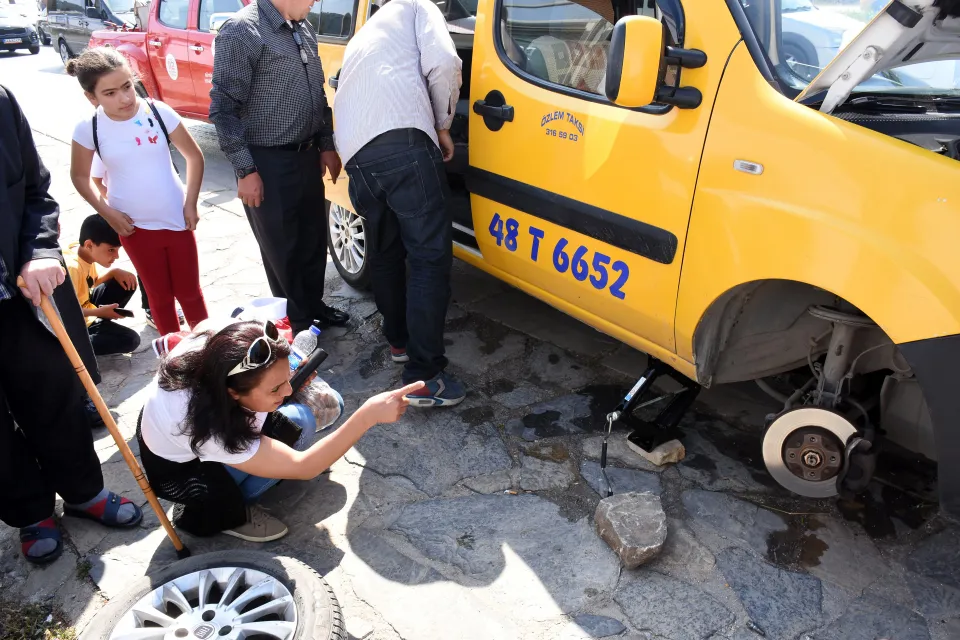 Bodrum Kıbrıs Şehitleri Caddesi'nde kırmızı ışıkta bekleyen bir taksinin altına kedi girdiği fark edildi. Aracı yol kenarına park eden sürücü Ahmet İribaş, motor bölümüne girdiği belirlenen kediyi çevredeki vatandaşların da desteği ile bulunduğu yerden çıkarmaya çalıştı. Vatandaşlardan biri cep telefonu ile kedi sesi dinletti. Gebe sanılan kedi, bir türlü çıkmayınca itfaiyeye bildirildi.