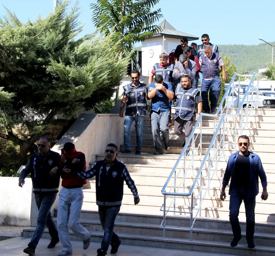 İstihbarı çalışmaların tamamlanmasının ardından Antalya’da bir otelde oldukları tespit edilen H.O., F.O., H.O., M.U.B., İ.B., N.H. ve E.S. Muğla polisi tarafından gözaltına alındı. Asayiş Şube Müdürlüğü ekipleri tarafından Muğla’ya getirilen zanlılar ifadeleri alındıktan sonra hakim karşısına çıkarılmak üzere adliyeye sevk edildiler. İlk olarak Cumhuriyet Savcılığı’na ifade veren zanlılar tutuklanma talebi ile mahkemeye sevk edildi. Hakim karşısına çıkarılan zanlılar tutuklanarak cezaevine gönderildiler.