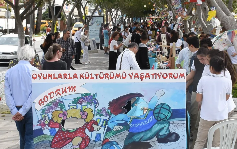 Muğla Milli Eğitim Müdürlüğünce yürütülen proje kapsamında, Bodrum ilçesinde farklı ortaokullardan öğrenciler tarafından yapılan geleneksel oyuncaklar ve çeşitli oyun eşyaları, Oyuncak Şenliğinde sergiledi.