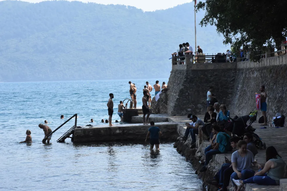 Türkiye'nin çeşitli illerinden hava sıcaklığının 32 derece ölçüldüğü Ula ilçesi Akyaka Mahallesi'ne gelenler, sahilde yürüyüp kafelerde kitap okudu. Akyaka sahilinde tatilciler, kayalıklardan denize atladı. Bazıları da kano ve rüzgar sörfü keyfi yaptı.