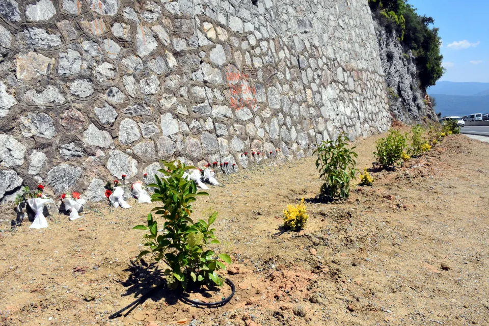 Muğla'da, İzmir'in Buca ilçesinden Anneler Günü programı için Marmaris'e gidenleri taşıyan tur midibüsünün devrilmesi sonucu 24 kişinin yaşamını yitirdiği Sakar Geçidi mevkisine karanfil bırakıldı, dua edildi.