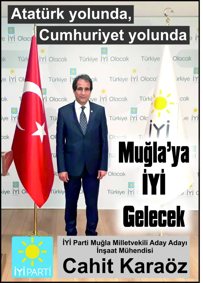 İyi Parti Muğla Milletvekili aday adayları toplantısı yapıldı. Vekil aday adayların kendilerini tanıtmak için kürsüde konuşma yaptığı toplantıda İyi Parti Muğla Milletvekili Aday Adayı Cahit Karaöz; “Muğla ve Türkiye için tüm gücüyle çalışacağı sözünü verdi.