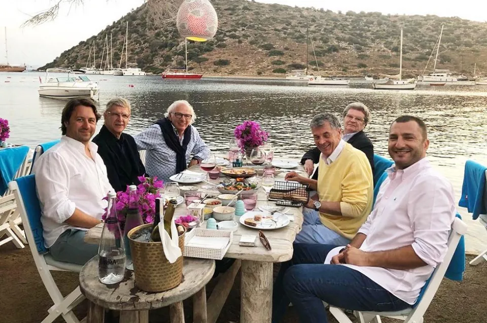 Arsenal Kulübünün eski yöneticilerinden David Dein'in davetlisi olarak ilçeye gelen Fransız teknik adam, Bodrum'un Gümüşlük Mahallesi'nde bir balık restoranında yemek yedi.