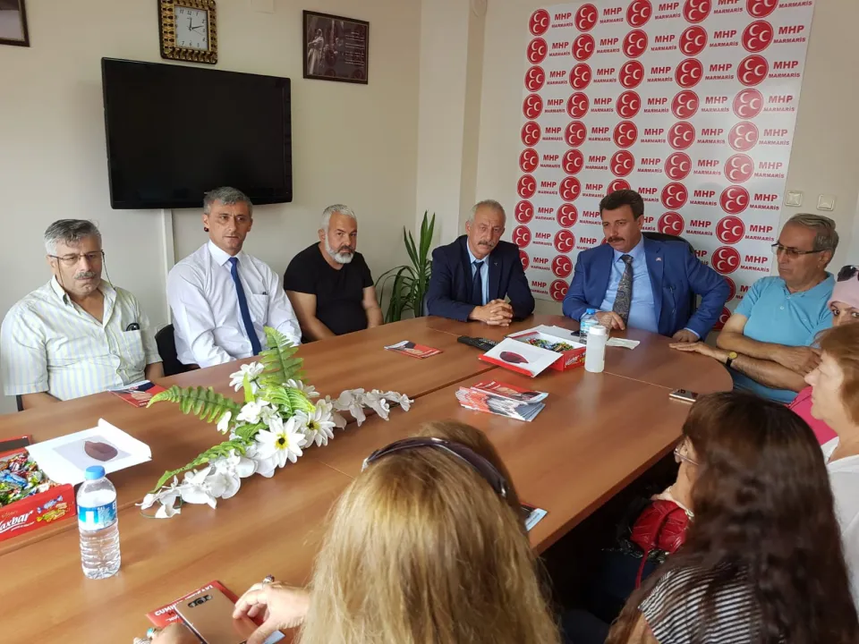 Milliyetçi Hareket Partisi (MHP) Marmaris İlçe Teşkilatında dün düzenlenen bayramlaşma törenine, Muğla Milletvekili Adayları Mehmet Erdoğan (mevcut milletvekili), Temel Irmak, İlçe Başkanı Kemal Kalemci, yönetim kurulu üyeleri ve çok sayıda partili katıldı. Bayramlaşmanın ardından geçilen istişare toplantısında konuşan MHP Muğla Milletvekili Mehmet Erdoğan, ‘Hiç kimsenin kuşkusu olmasın, 24 Haziran seçimlerinden daha güçlü bir MHP çıkacak’ dedi.