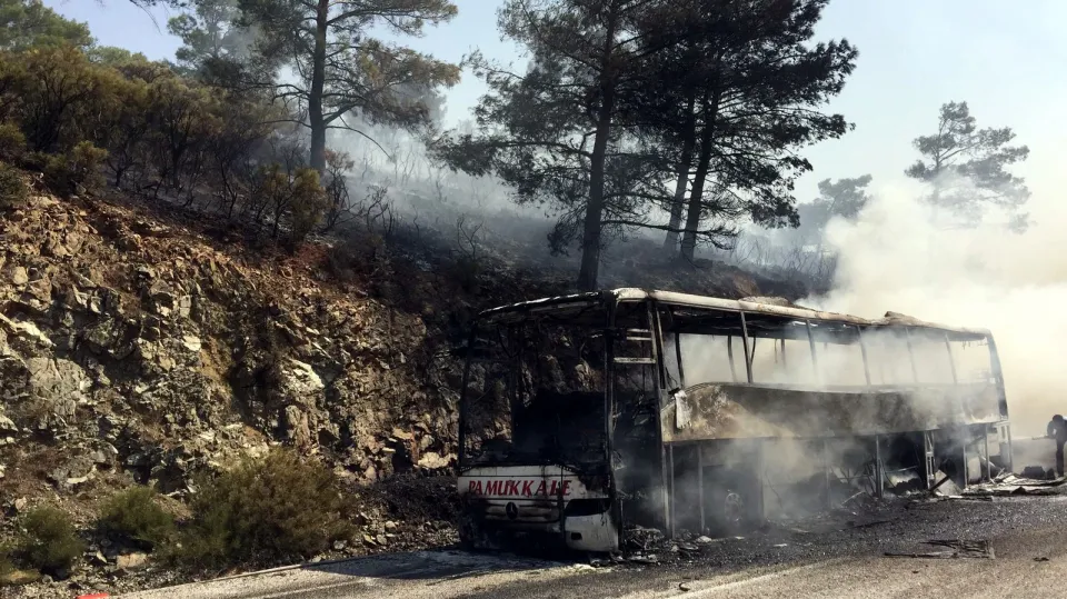 Yangında, otobüs kullanılamaz hale geldi, küçük bir ormanlık alan zarar gördü.