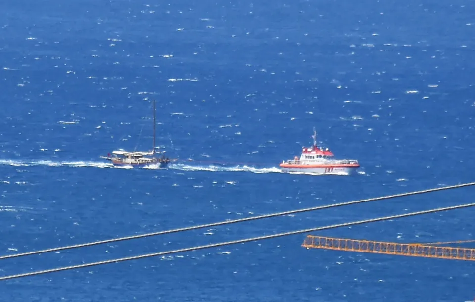 Bodrum ilçesinde arızalanan tur teknesi, "KIYEM 2" isimli kurtarma botu ile limana çekildi.