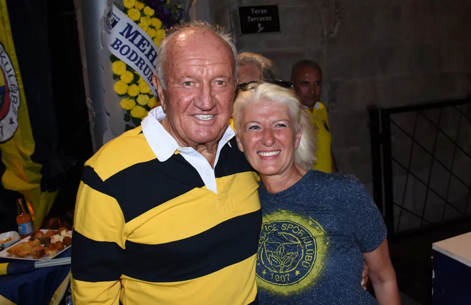 Bodrum Fenerbahçeliler Derneği Başkanı Mert Sayın ve geceye katılanlar, Fenerbahçe marşları söyleyip tezahüratlar yaptı.