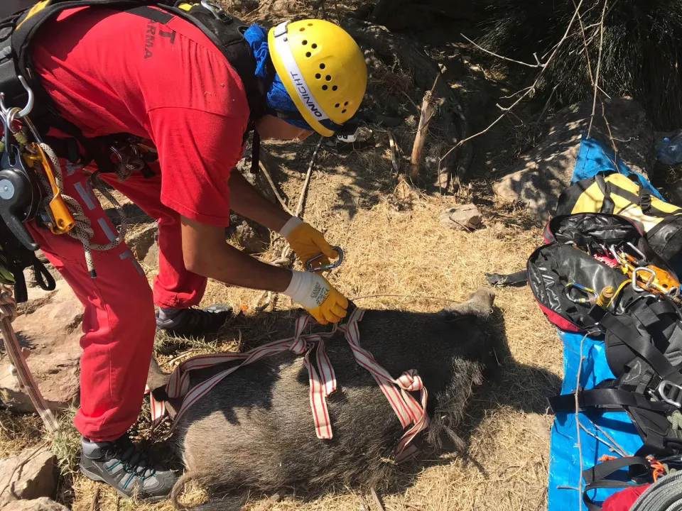 Bodrum ilçesinde, içi boş su kuyusunda mahsur kalan domuzu, AKUT ekibi kurtardı.